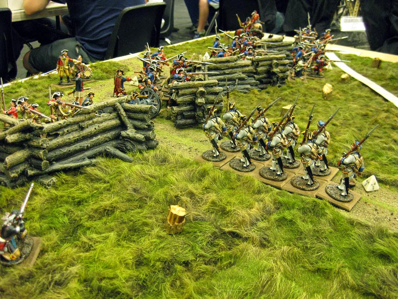 The French Regulars positioned for their assault on the artillery behind the fieldworks.